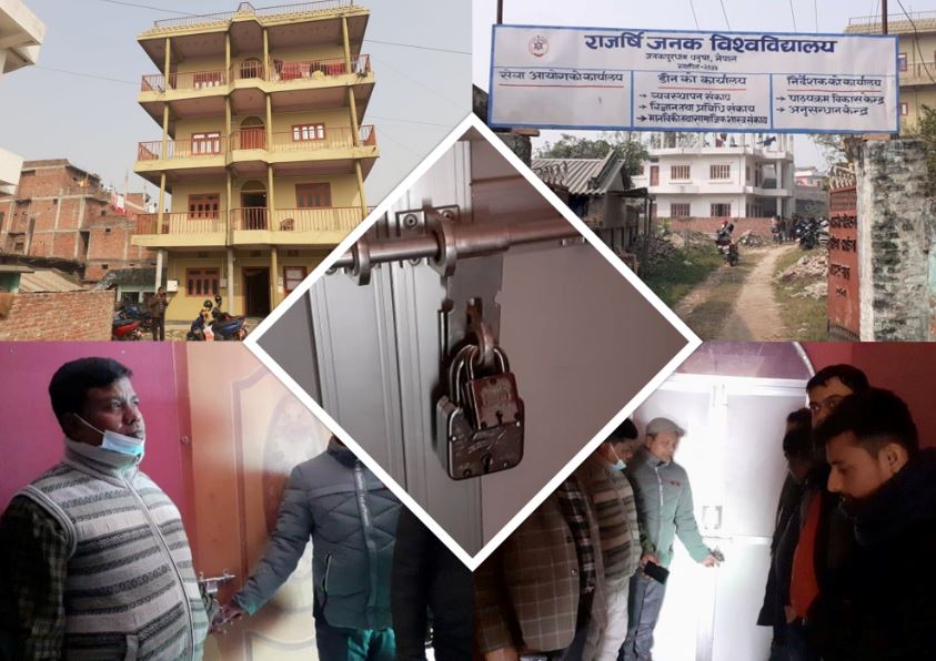 राजर्षि जनक विश्वविद्यालयको सेवा आयोगमा शिक्षकहरुले गरे तालाबन्दी