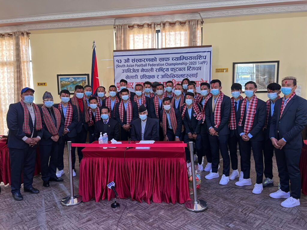 प्रधानमन्त्री निवास बालुवाटारमा आयोजित एक कार्यक्रमकाबीच प्रधानमन्त्री शेरबहादुर देउवाले साफ उपविजेता टोलीलाई सम्मान गरेका हुन् ।