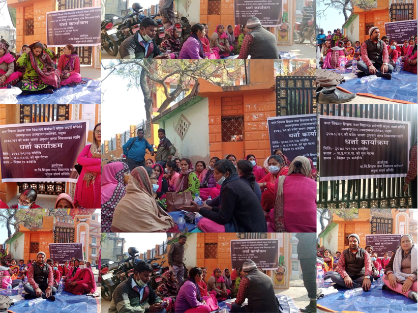 उपमहानगरपालिका अन्तर्गतका सामुदायिक विद्यालयमा कार्यरत बालविकास शिक्षक तथा विद्यालय कर्मचारीले तोकिएको पारिश्रमिक उपलब्ध गराउन उपमहानगरसँग माग गरेपनि नगरप्रमुख लालकिशोर साहले कुनै सुनुवाई नगरेपछि बाध्य भएर धर्नामा बसेका हुन् ।