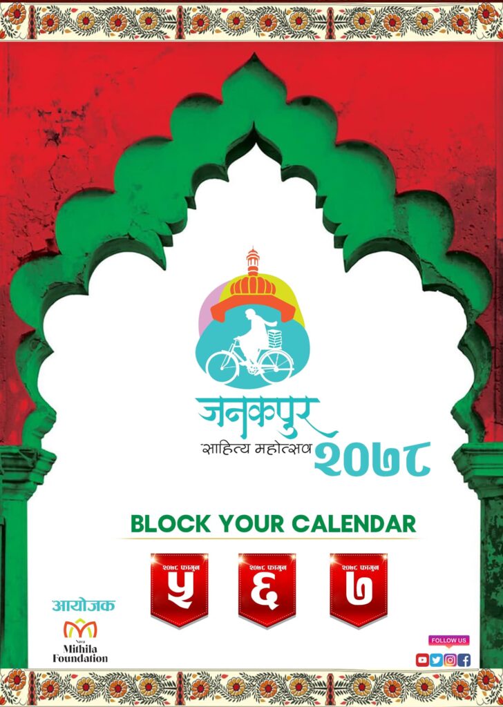 जनकपुरधाम, १२ पुस । जनकपुरधाममा आगामी फागुन ५ गतेदेखि जनकपुर साहित्य महोत्सव २०२२ हुने भएको छ ।