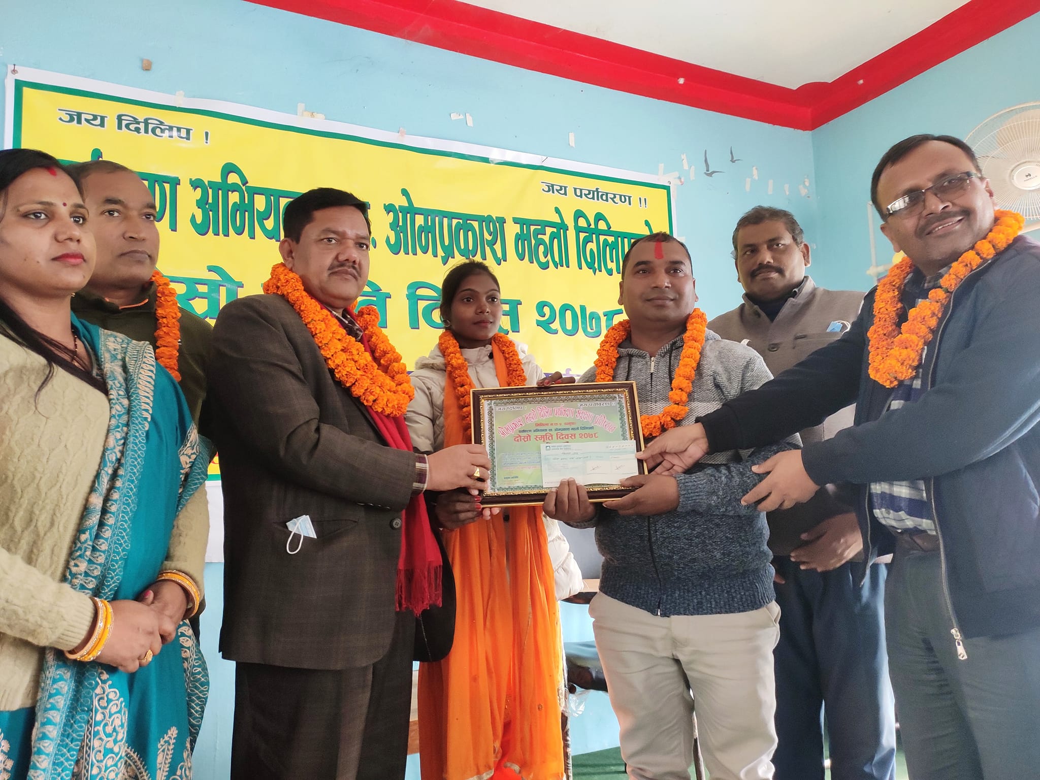 चुरे संरक्षण उपर कलम चलाउने उत्कृष्ट पत्रकारलाई सम्मान सहित पुरस्कृत गर्ने कार्यक्रम अन्तर्गत सम्मान पत्र सहित नगद ५ हजार १०० सहित पत्रकार बिजय कुमार साहलाई सम्मानित गरिएको थियो ।