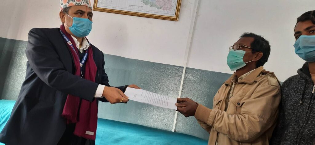 ज्ञापन पत्र बुझ्दै धनुषाका प्रमुख जिल्ला अधिकारी सुरेन्द्र पौडेलले पूर्व कर्मचारीलाई अदालत र श्रम कार्यालयमा न्यायका लागि गुहार गर्न आग्रह गरे ।