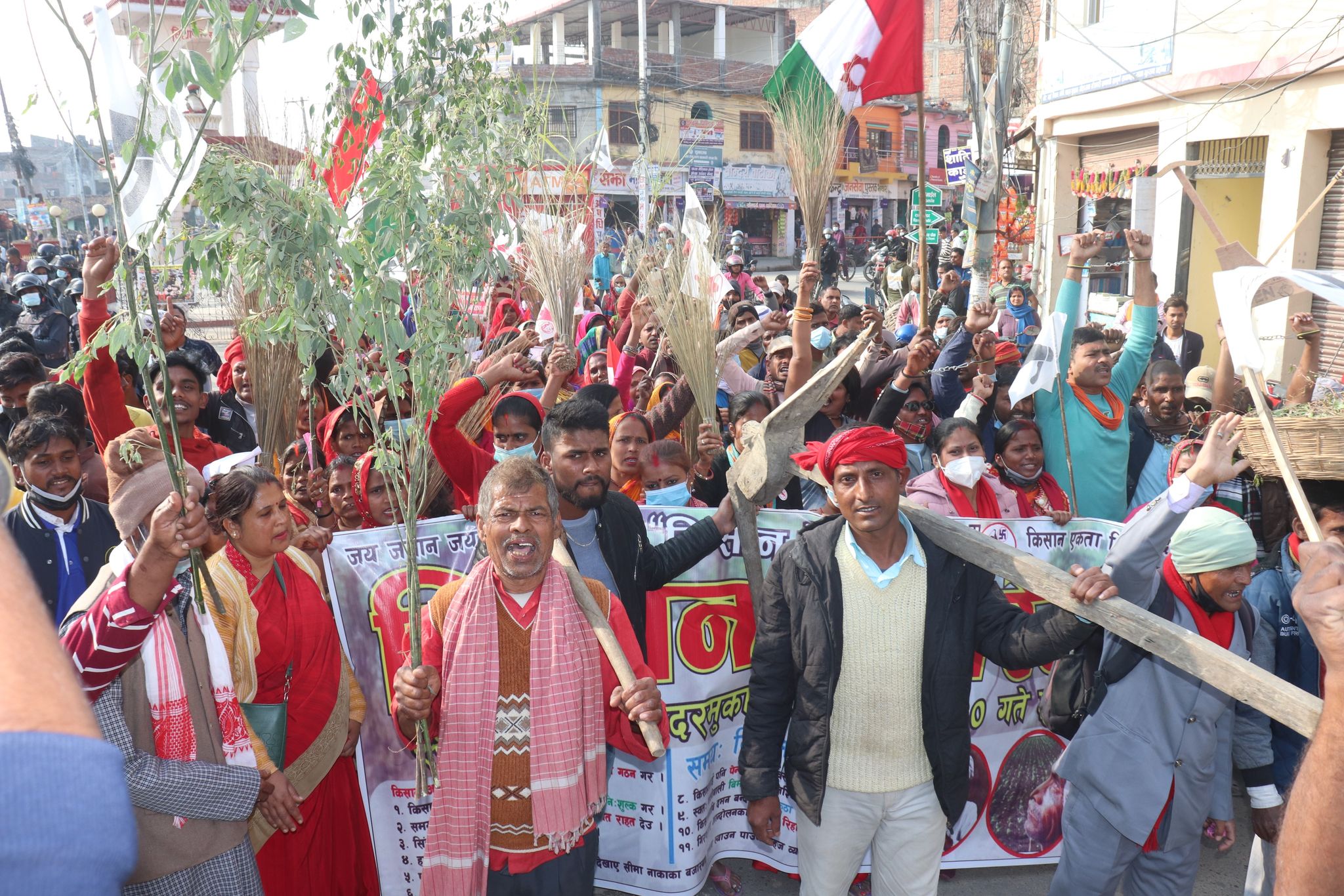 र्यालीमा सहभागीहरुले हलो, कोदालो, खुर्पा, बाँसका टोकरी, कुचो, झाडुलगायतका सामग्रीहरु बोकेका थिए । सहभागीले कृषीमन्त्री राजीनामा दे, किसानको माग सम्बोधन गर, प्रदेश सरकार र संघीय सरकार मुर्दाबाद लगायतका नारासमेत लगाएका थिए ।