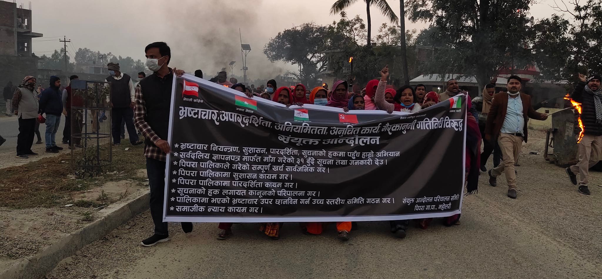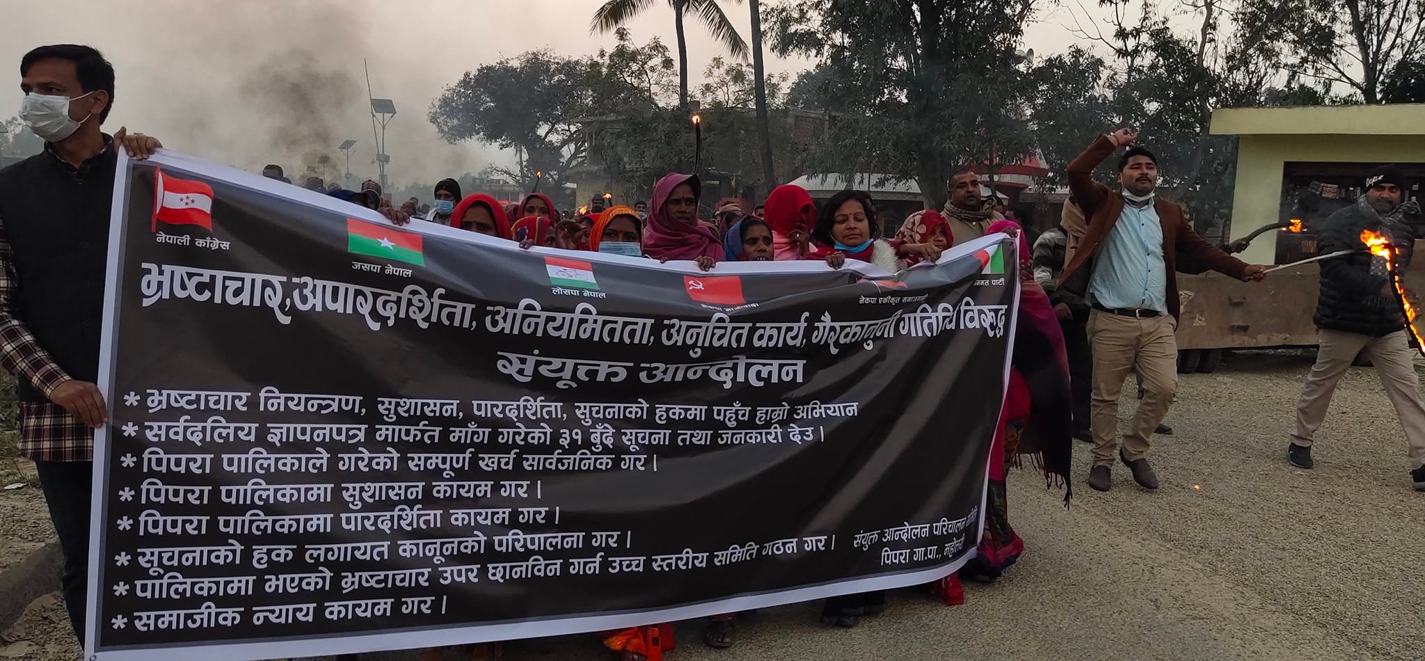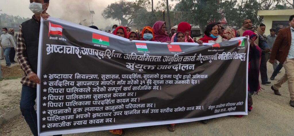 पिपरा गाउँपालिकामा भएको भ्रष्टाचार, अनियमितता, अपारदर्शिता विरुद्ध मसाल जुलुस प्रदर्शन गरिएको हो ।
