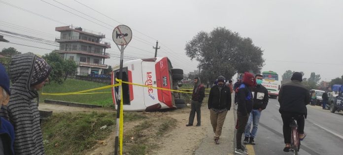 सर्लाहीमा बस दुर्घटना हुँदा १६ जना घाइते