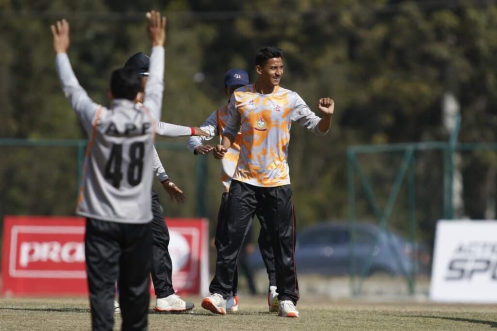 यसअघि कीर्तिपुरस्थित त्रिवि क्रिकेट मैदानमा टस हारेर ब्याटिङको निम्तो पाएको एपिएफले १९.५ ओभरमा सबै विकेट गुमाउँदै १५७ रन बनाएको थियो ।