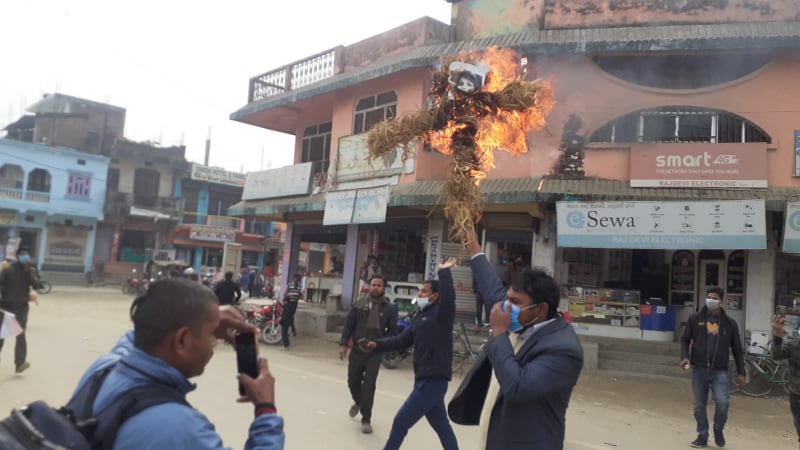 रौतहटको गौरमा मन्त्री यादवको पुतला जलाइयो