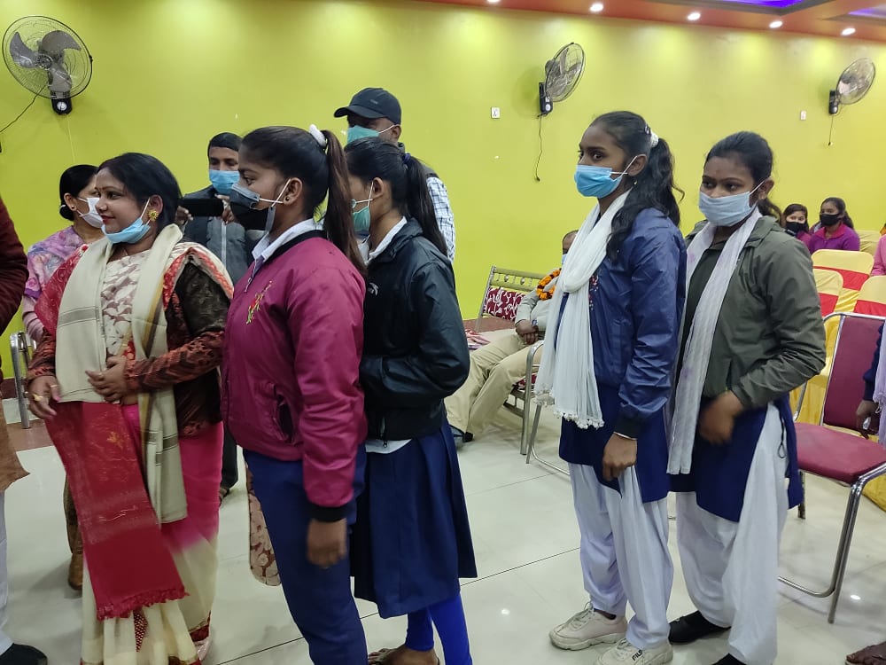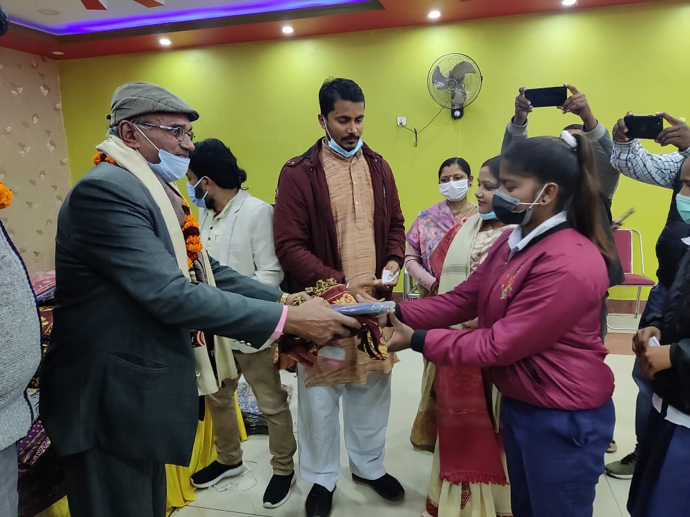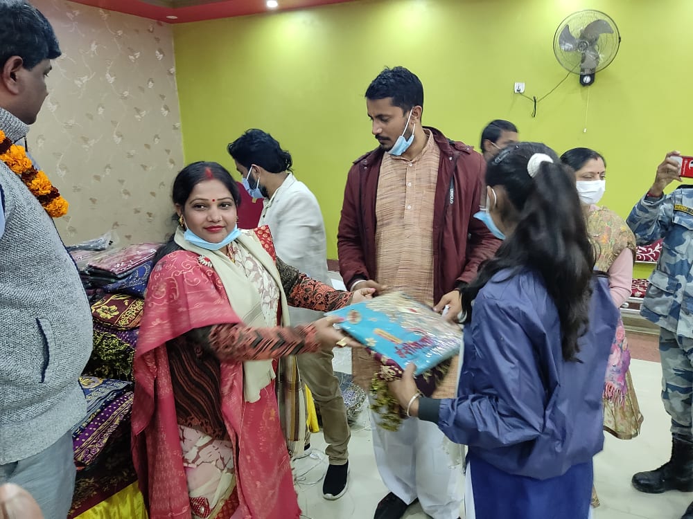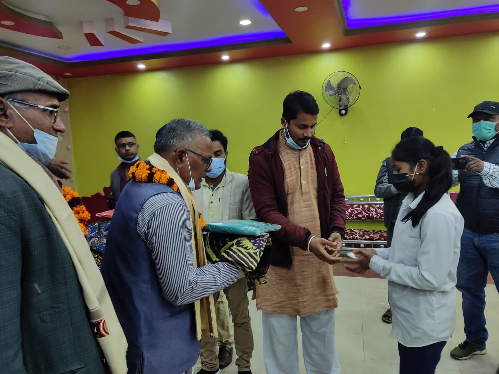शनिबार जनकपुरधाम उपमहानगरपालिका वडा नम्बर–७ मा आयोजित एक कार्यक्रमकाबिच सामुदायिक विद्यालयमा अध्ययनरत छात्राहरुलाई कपड़ा वितरण गरिएको हो ।