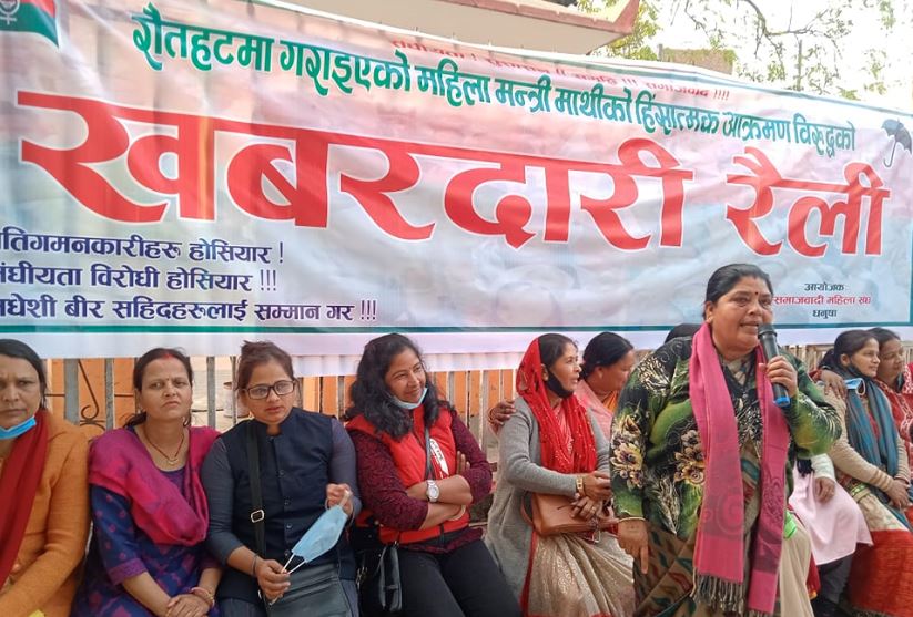 भौतिक पूर्वाधार तथा यातायातमन्त्री रेणु यादवको बचाउ गर्दै महिला संघले जनमत पार्टीविरूद्ध प्रदर्शन गरेको हो ।