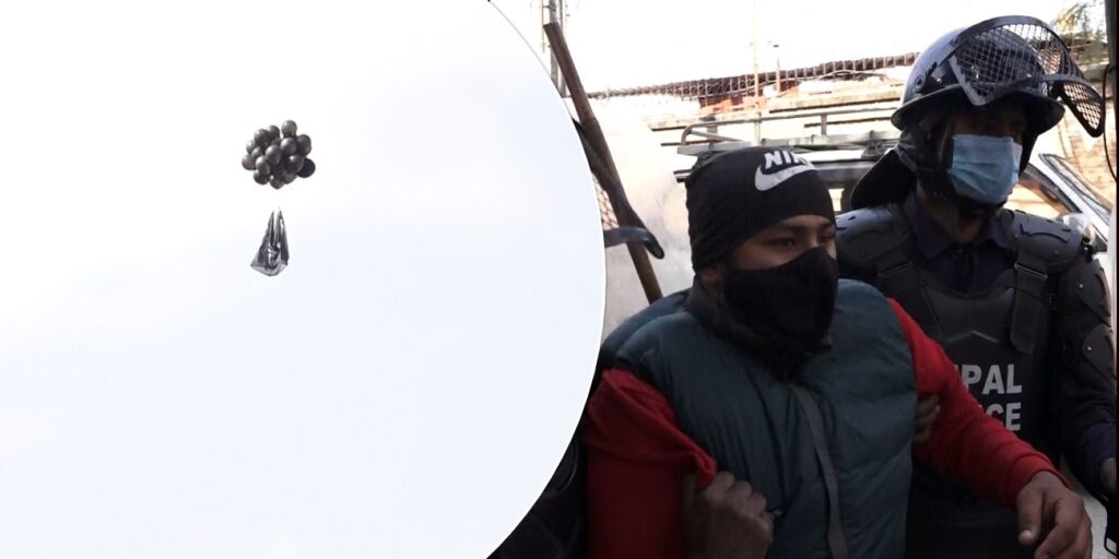 सिंहदरबार छेउमा कालो बेलुन उडाएर युवा संघद्वारा सरकारको विरोध