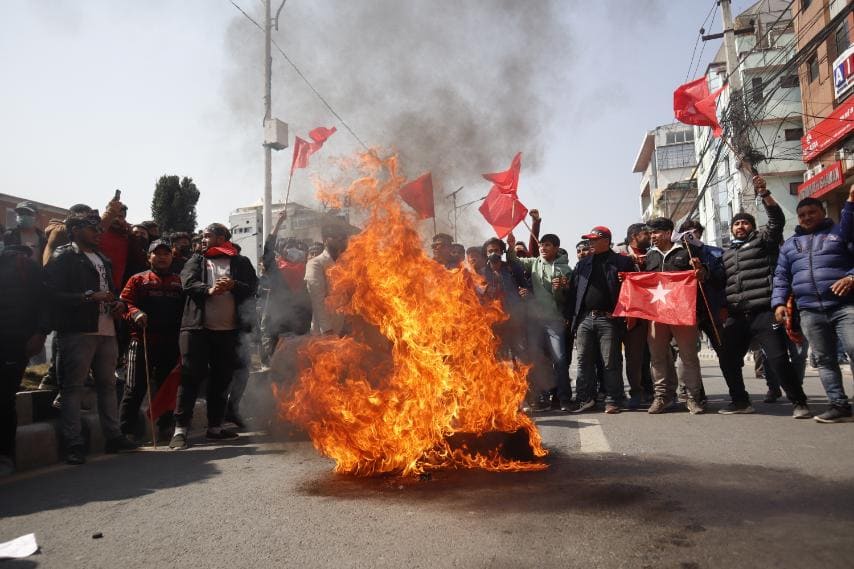 सत्तारुढ दल माओवादी केन्द्र र नेकपा एकीकृत समाजवादीका भ्रातृ संगठनकै अगुवाइमा एमसीसीको विरोधमा प्रदर्शन भइरहेको छ ।