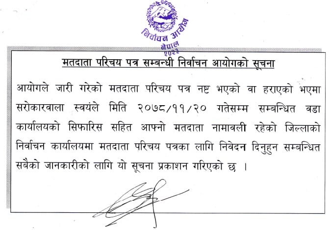 फागुन २० गतेसम्म मतदाता परिचय पत्रका लागि निवेदन दिन आह्वान