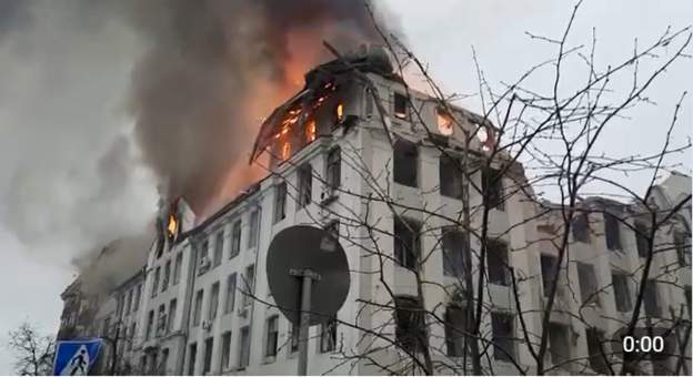 युक्रेनको खार्किभ सहरमा रहेको प्रहरी विभागको भवनमा रकेट प्रहार भएको हो । युक्रेनी सरकारको टेलिग्राम च्यानलमा पोस्ट गरिएको भिडियोमा एउटा भवनमा आगो लागेको देखाइएको छ ।