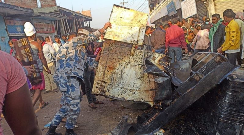 महोत्तरीको मटिहानी नगरपालिकास्थित पसलमा आगलागी हुँदा करोडौँको क्षति