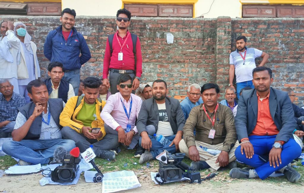गोलबजारस्थित जनता माध्यमिक विद्यालयमा जारी नेपाली कांग्रेसको मतदानको समाचार संकलन गर्न पुगेका पत्रकारहरूलाई अवरोध गरेपछि उनीहरू धर्नामा बसेका हुन् ।