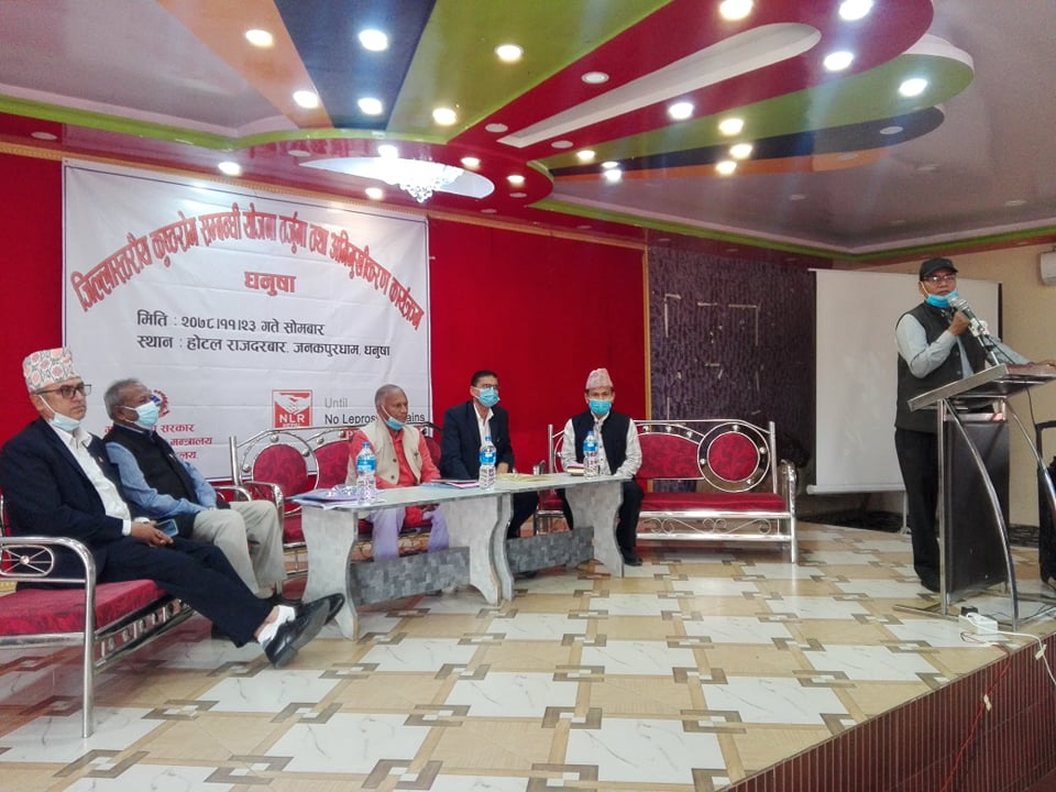 जनकपुरधाम, २३ फागुन । धनुषा जिल्लामा कुष्ठरोगको प्रभावकारी उपचार, नियन्त्रण तथा नयाँ बिरामीको खोज तलासका लागि विशेष अभियान चलाइने भएको छ ।