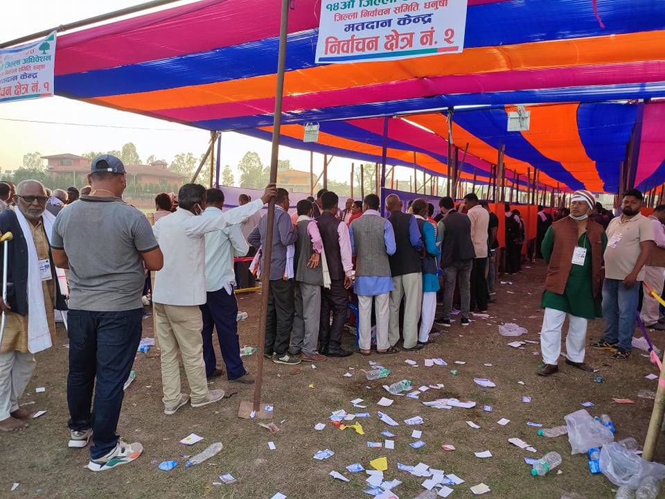 कांग्रेस धनुषाको १४औं जिल्ला अधिवेशनमा सभापति पदको दोस्रो चरणको निर्वाचन (मतदान प्रक्रिया) को बिहीबार बिहान ८ बजेदेखि गर्ने सुचना प्रकाशन गरिएकोमा उम्मेदवारहरुको सहमति र सहकार्यको निर्णय अनुसार सभापति पदको दोस्रो चरणको मतदान शुक्रबार बिहान ८ बजेदेखि हुने जिल्ला निर्वाचन अधिकृत अरुण कुमार ज्ञवालीले जानकारी दिए ।