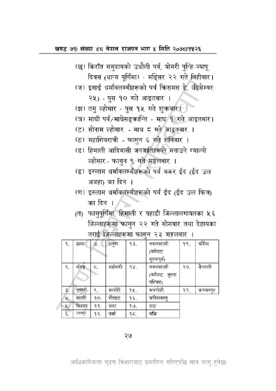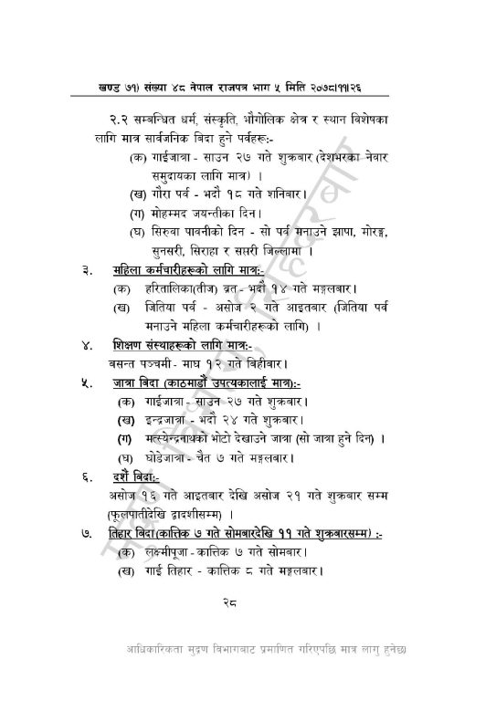 २०७९ मा शनिबार बाहेक ४३ दिन सार्वजनिक बिदा