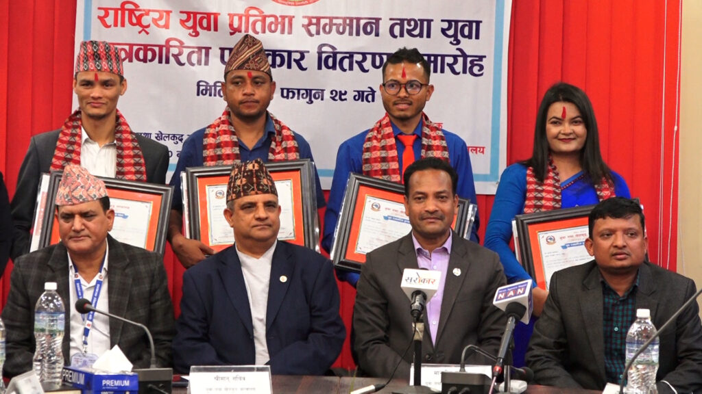 मन्त्रालयले आइतबार राष्ट्रिय युवा प्रतिभा सम्मान तथा युवा पत्रकारिता पुरस्कार वितरण कार्यक्रमकाबीच युवाको क्षेत्रमा कलम चलाउने चार सञ्चारकर्मीलाई नगद ५० हजार रुपैयाँ पुरस्कारसहित सम्मान गरेको हो ।