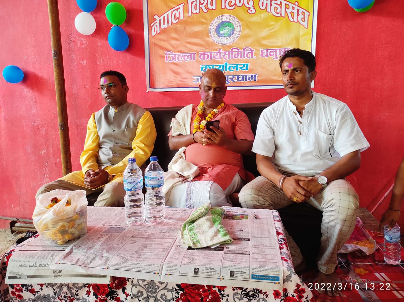 महासंघ धनुषाका अध्यक्ष जानकी रमन झाको अध्यक्षतामा आयोजित समारोहका प्रमुख अतिथी जानकी मन्दिरका सहायक महन्थ रामरोशन दासले हिन्दु धर्म, सँस्कार, सँस्कृति र परम्परालाई जिवन्त राख्न हिन्दु धर्मको संरक्षण एवं प्रवर्ध्दनमा लागेका सम्पूर्ण हिन्दुवादी संघसंस्थाहरुलाई एकजुट हुन आग्रह गरे ।