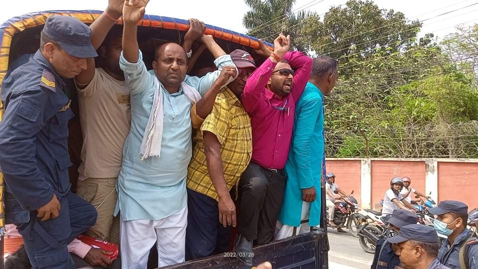 निषेधित क्षेत्रमा जुलुस, बन्द, हडताल तथा नाराबाजी गर्न नमिल्ने भएकाले प्रहरीले उनीहरूलाई नियन्त्रणमा लिएको जिल्ला प्रहरी कार्यालय धनुषाका प्रवक्ता प्रहरी नायव उपरीक्षक जितेन्द्र कुमार बस्नेतले जानकारी दिए ।