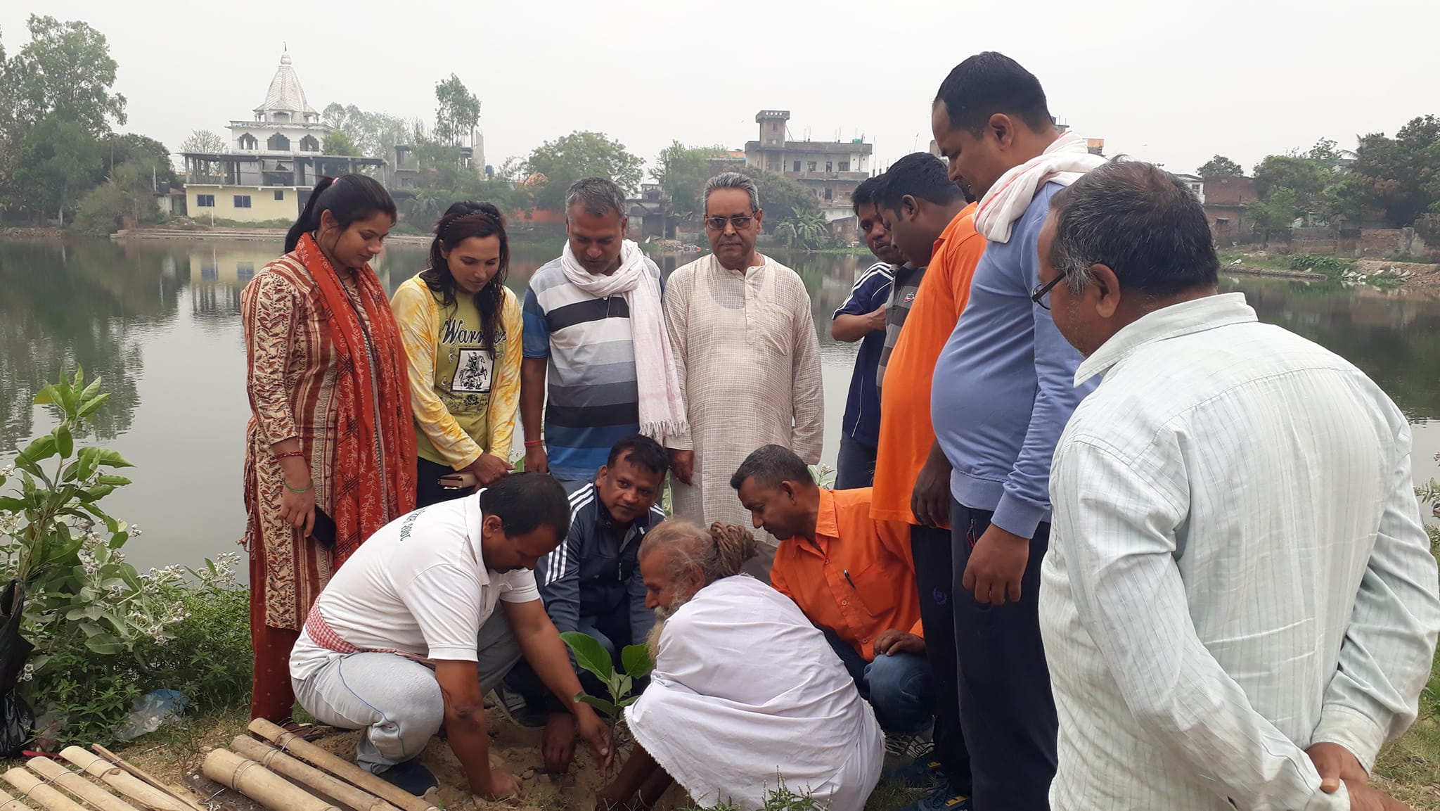 जनकपुरधामस्थित विषहारा पोखरीको पश्चिमी डिलमा वर, पिपल, निम र पाखरको बिरुवा रोपिएको हो ।