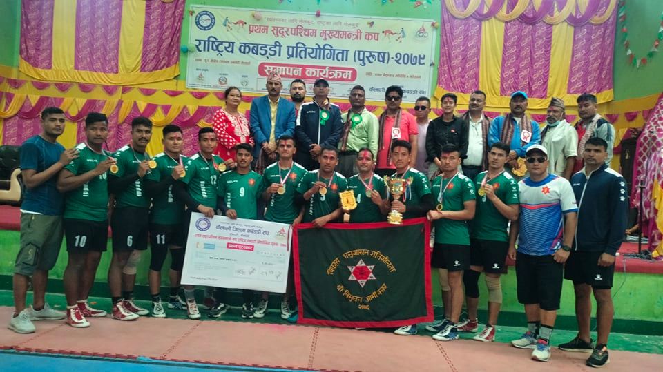 राष्ट्रिय पुरुष कबड्डी प्रतियोगिताको उपाधि भिडन्तमा आर्मीले एपिएफलाई ४०–१६ ले हरायो । कैलाली जिल्ला कबड्डी संघको आयोजनामा धनगढीमा भएको प्रतियोगिताको उपाधिसँगै आर्मीले नगद एक लाख ५० हजार पुरस्कार पाएको छ ।