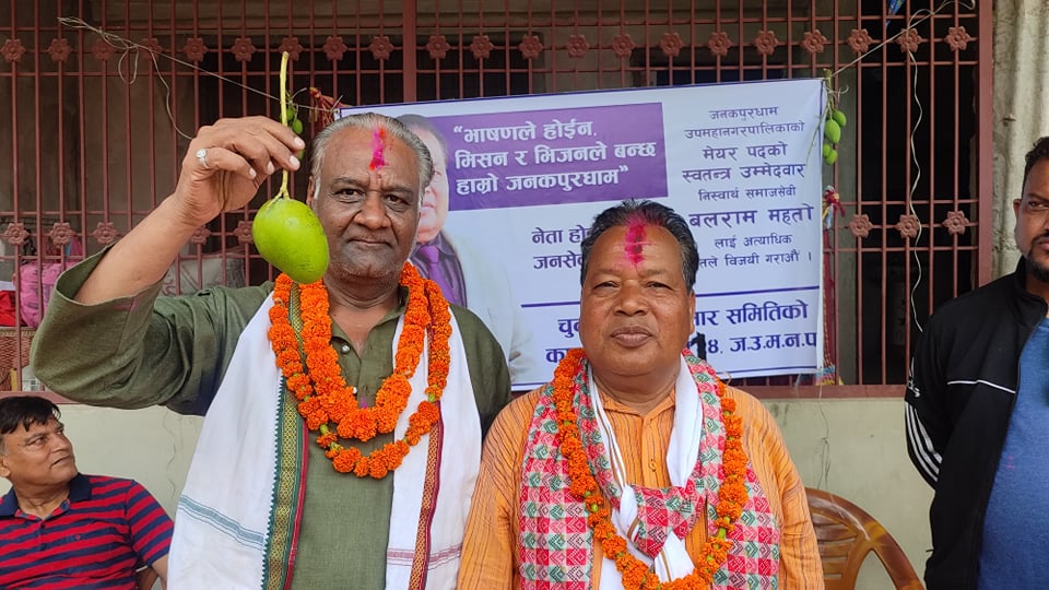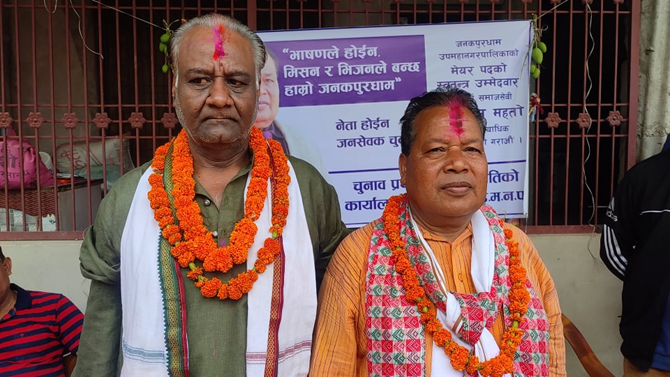 जनकपुरधाम, १८ बैशाख । आसन्न स्थानीय तहको निर्वाचनमा जनकपुरधाम उपमहानगरपालिकाको नेतृत्वका लागि मेयर पदका स्वतन्त्र उम्मेदवार बलराम महतो र उपमेयर पदका स्वतन्त्र उम्मेदवार निर्मल चौधरीले संयुक्त रुपमा घरदैलो अभियानको थालनी गरेका छन् ।