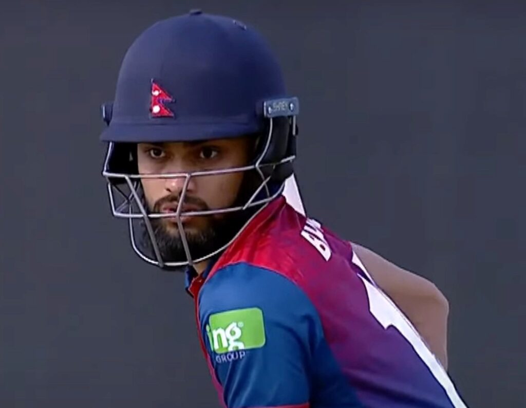 कीर्तिपुस्थित त्रिवि क्रिकेट मैदनमा २१४ रनको लक्ष्य पछ्याइ रहेको नेपालका लागि उनले ४३ बलमा पाँच चौका र दुई छक्कासहित अर्धशतक पूरा गरेका हुन् ।