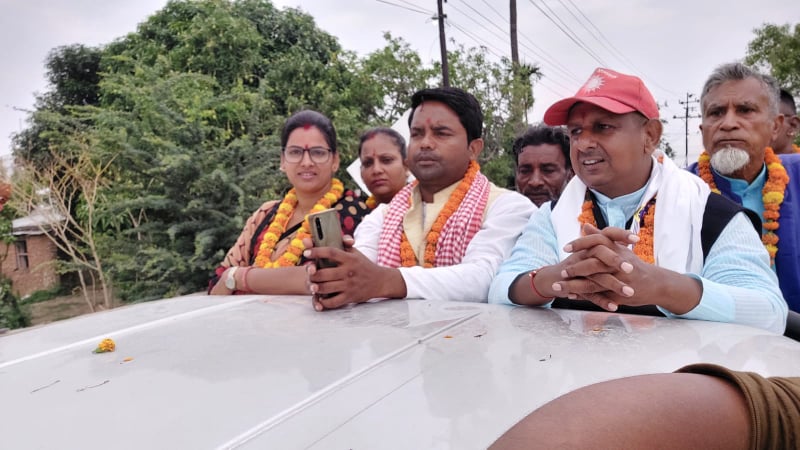 जनकपुरधाम, २६ बैशाख । आसन्न स्थानीय तहको निर्वाचनमा जनकपुरधाम उपमहानगरपालिकामा नेकपा एमालेको तर्फबाट मेयर पदका उम्मेदवार शिवशंकर साह हिरा र उपमेयर पदकी उम्मेदवार रुना झाले सोमबार पनि घरदैलो अभियानलाई तिव्रता दिएका छन् ।