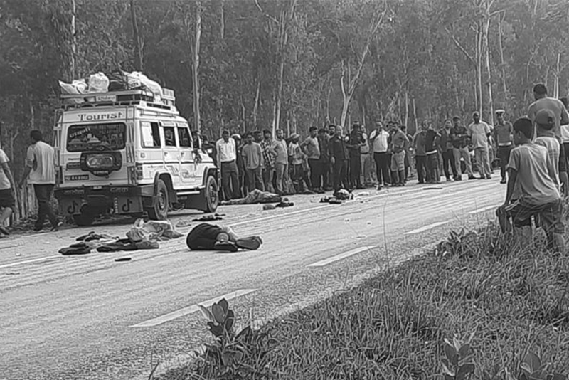 झापामा बसको ठक्करबाट म्यादी प्रहरीसहित दुई जनाको मृत्यु