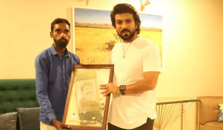 रामचरणले व्यस्त कार्यक्रमबाट समय निकालेर हैदरावादस्थित आफ्नो घरमा फ्यानलाई भेटे । फ्यानले आफ्नो खेतमा धानबाट रामचरणको अनुहार बनाएका थिए । त्यसपछि गडवाल जयराजले आफ्नो फोटो फ्रेम गराएर रामचरणलाई उपहार दिए । जयराजले चामलको बोरा पनि ल्याएका थिए । यससँगै रामचरणले जयराजसँगको फोटो पनि क्लिक गरेका छन्, जुन सामाजिक सञ्जालमा निकै भाइरल भइरहेको छ ।