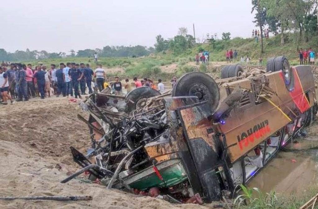 रूपन्देहीको रोहिणी नदीमा बस खस्दा ९ जनाको मृत्यु