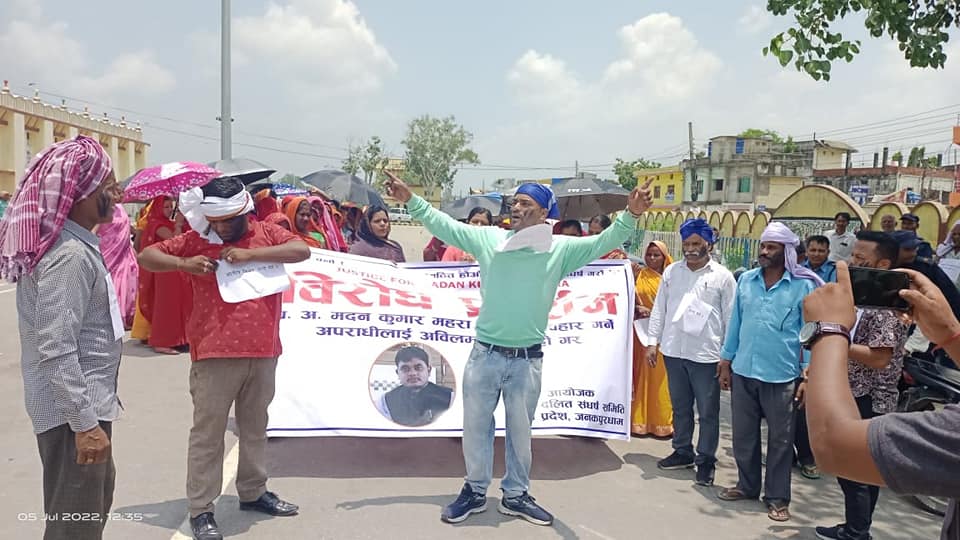 प्रधानाध्यापक महराले न्याय पाउनु पर्ने माग गर्दै जनकपुरधाममा विरोध प्रदर्शन