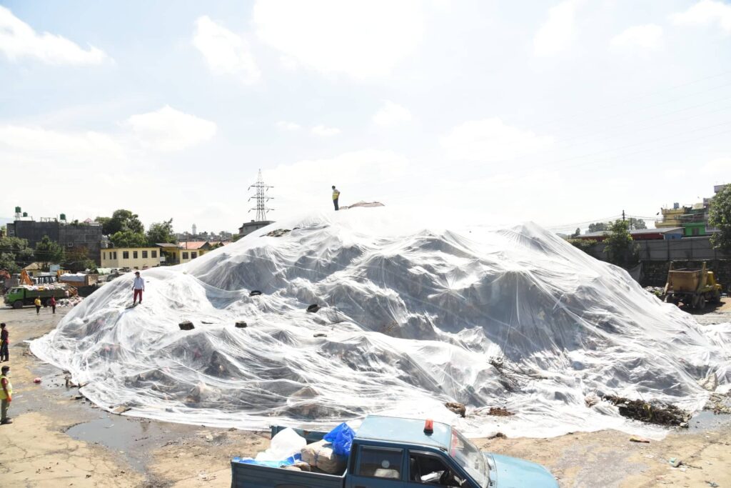 काठमाडौं महानगरले प्लास्टिकले ढाकेर राख्यो फोहोर