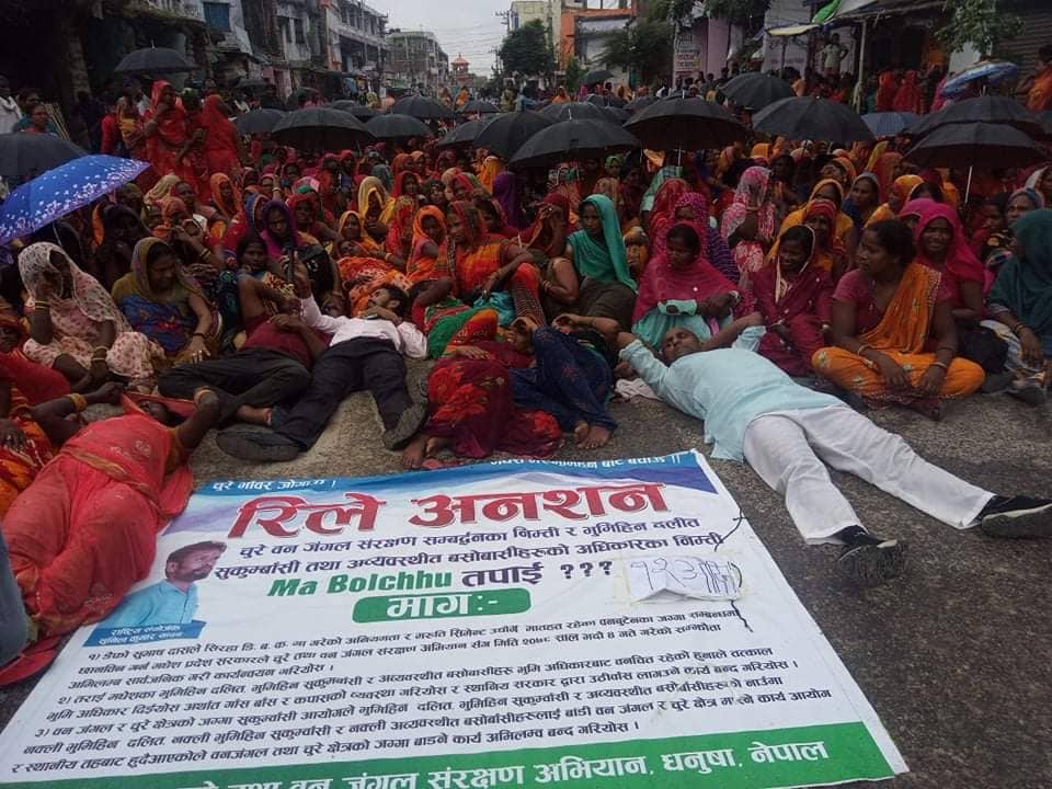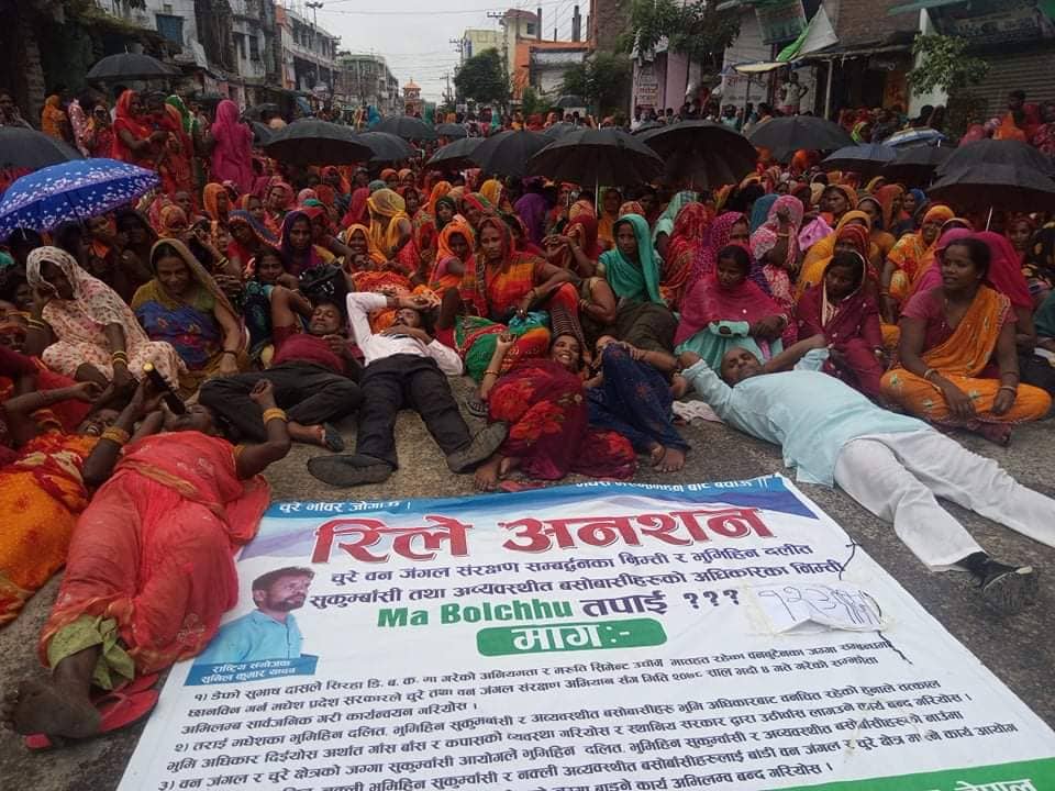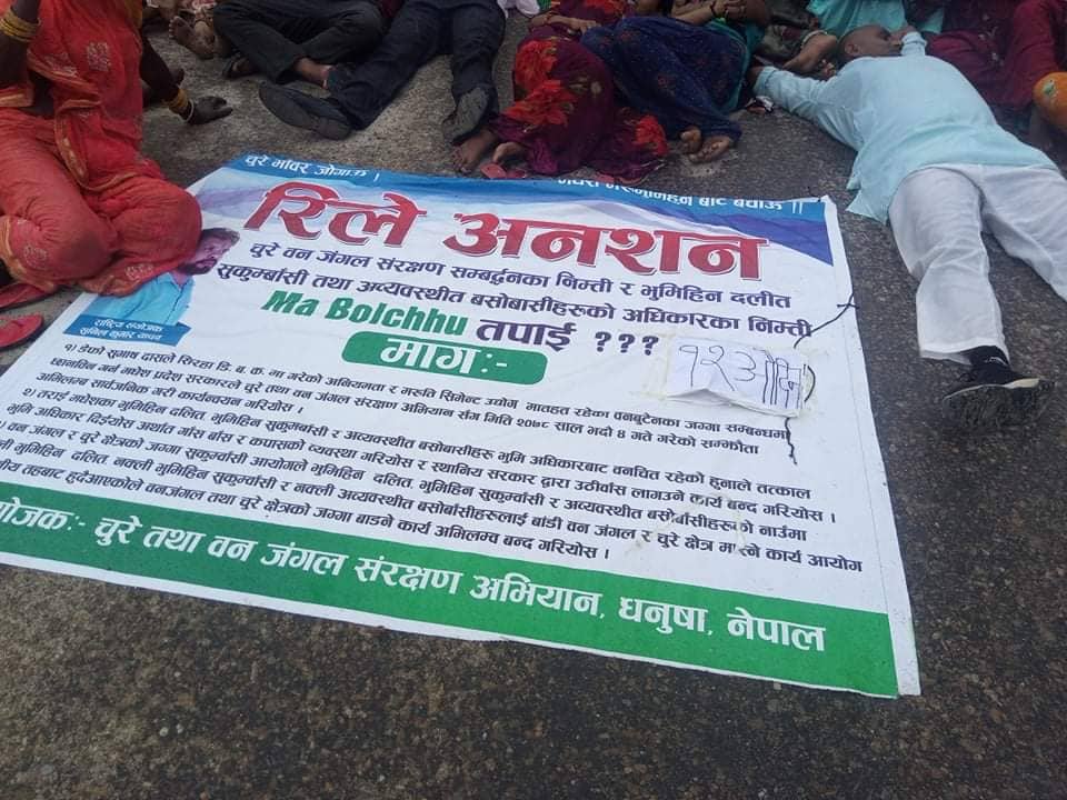 चुरे तथा वनजंगल संरक्षण अभियानका अभियानीहरुले भूमिहीन, दलित, सुकुम्बासी तथा अव्यवस्थित बसोबासीहरुको अधिकारका निमित्त मुख्यमन्त्री कार्यालय अगाडि सडकमै सुतेर विरोध प्रदर्शन गरेका हुन् ।
