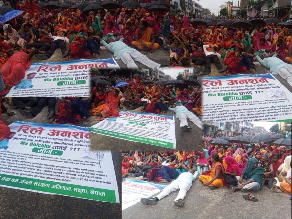 सिरहास्थित मारुती सिमेन्टले कब्जा गरेको वन बुटेनको जग्गा फिर्ता हुनुपर्नेलगायत विभिन्न ५ बुँदे माग राख्दै चुरे तथा वनजंगल संरक्षण अभियानका अभियन्ताहरु विगत १२ दिनदेखि जनकपुरधामको जनकचोकमा रिले अनशनमा बस्दै आएका छन् ।