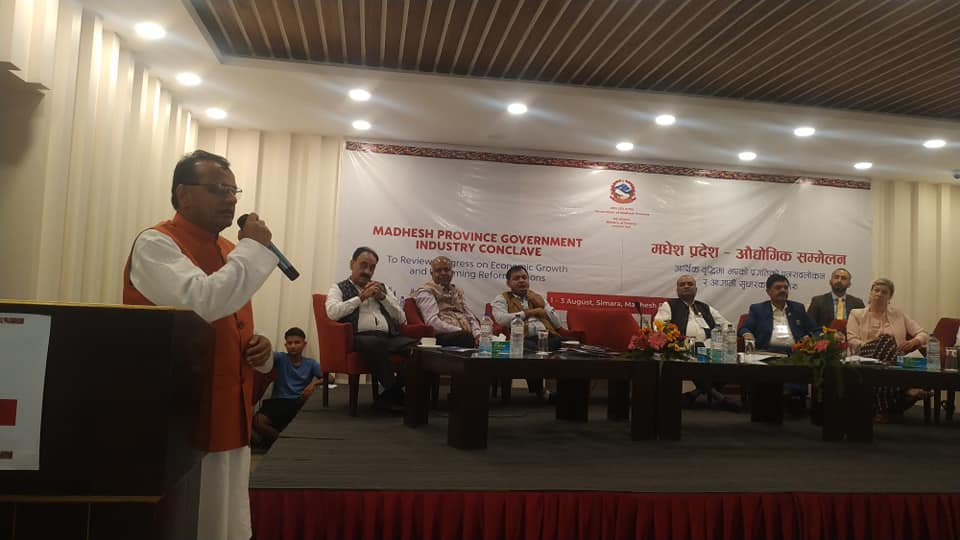 सम्मेलनको उद्घाटन सत्रमा नेपालका लागि वेलायती राजदूत निकोला पोलिट, नेपाल उद्योग परिसंघका निवर्तमान अध्यक्ष सतिश मोर, उपाध्यक्ष राजेश अग्रवाल, मधेस प्रदेश संयोजक नरेश दास सहितकाले आ–आफ्नो मन्तव्य राखेका थिए ।