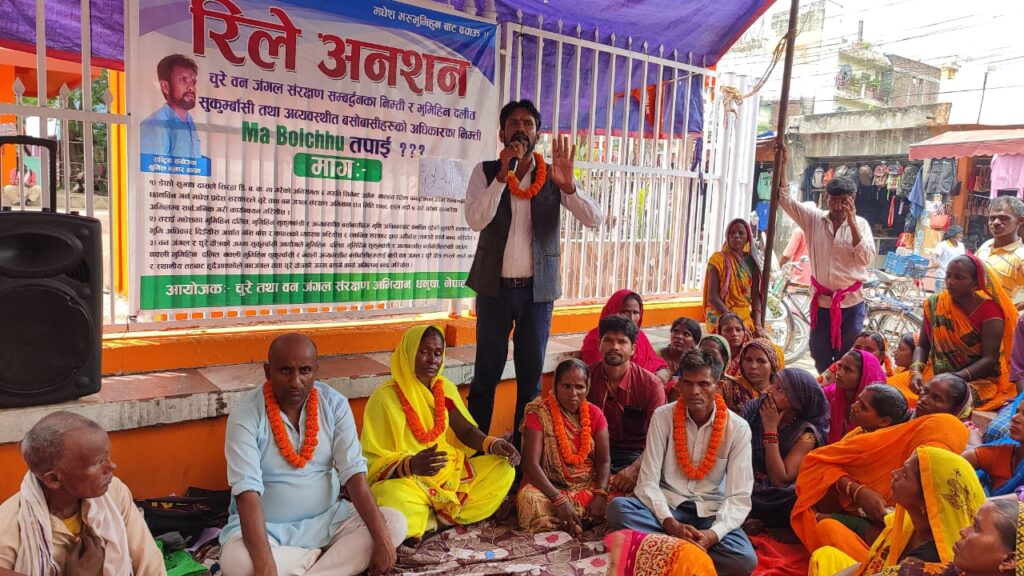 सिरहास्थित मारुती सिमेन्टले कब्जा गरेको वन बुटेनको जग्गा फिर्ता हुनुपर्नेलगायत विभिन्न ५ बुँदे माग राख्दै चुरे तथा वनजंगल संरक्षण अभियानका अभियन्ता विगत १५ दिनदेखि जनकपुरधामको जनकचोकमा रिले अनसनमा बस्दै आएका छन् ।