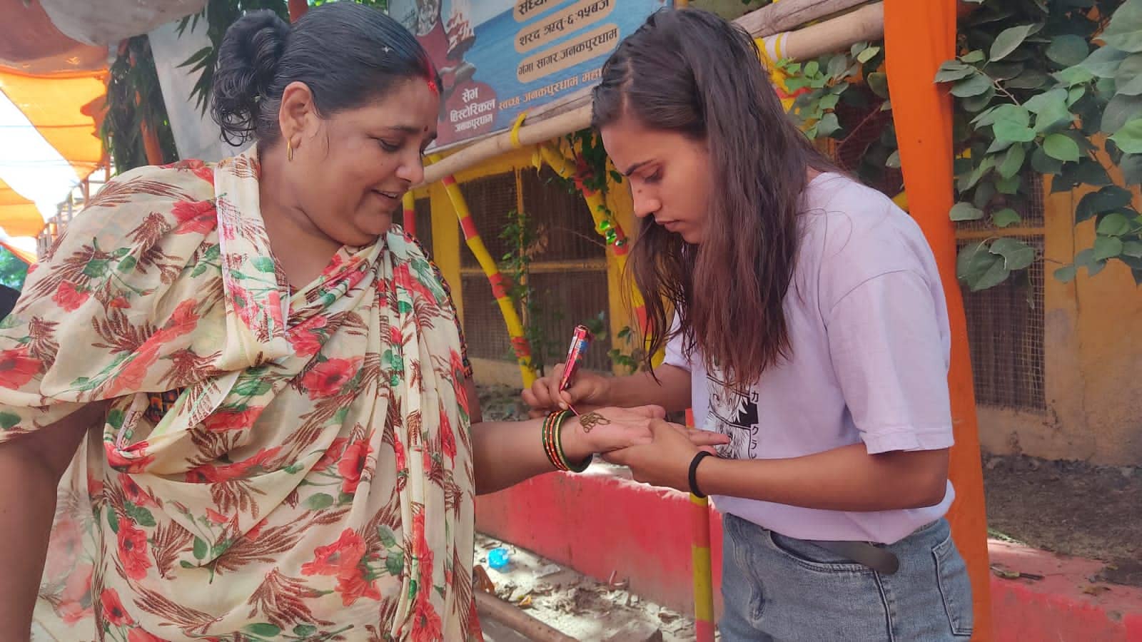 साउनको सुरु महिनामा अधिकांश महिलाको हत्केला मेंहदीको रंगले रङ्गिने हुनाले साउने सोमवारलाई विशेष ध्यान दिई जनकपुरधाम उपमहानगरपालिका–२ स्थित शिवचोकको शिव मन्दिरमा पूजा गर्न आउने व्रतालुलाई मेंहदी लगाउने लक्ष्य लिई निःशुल्क मेहदी क्याम्प सञ्चालनमा ल्याइएको आयोजक संस्थाले जनाएको छ ।