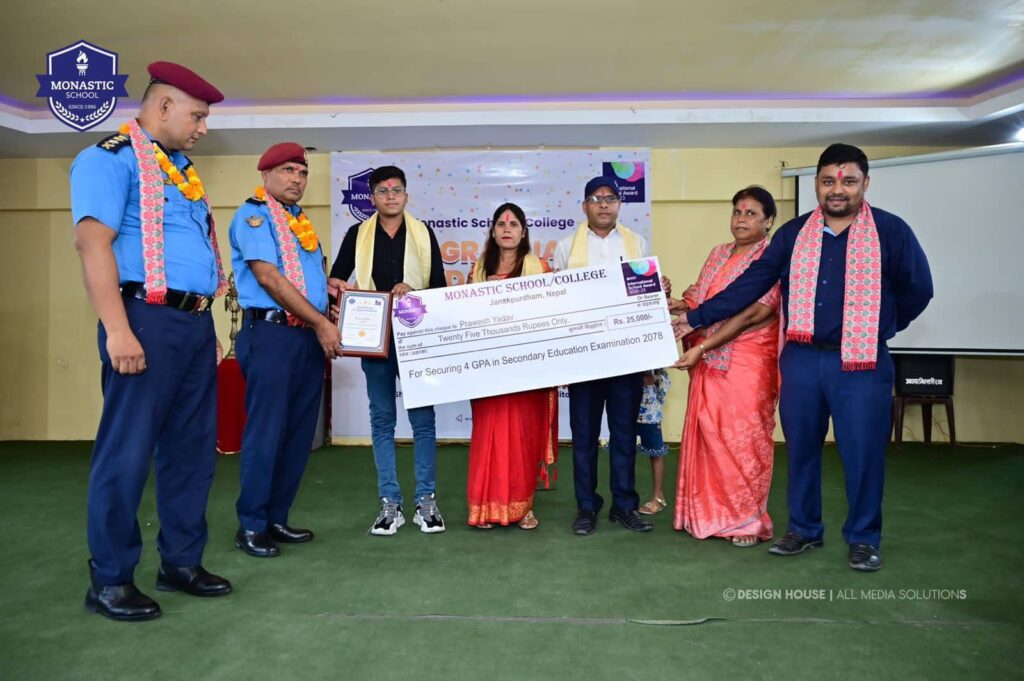बिहीबार विद्यालयमा आयोजित एक कार्यक्रमका बिच उत्कृष्ट नतिजा ल्याउने छात्र यादलाई नगद २५ हजार र सम्मानपत्र सहित सम्मान गरिएको हो ।