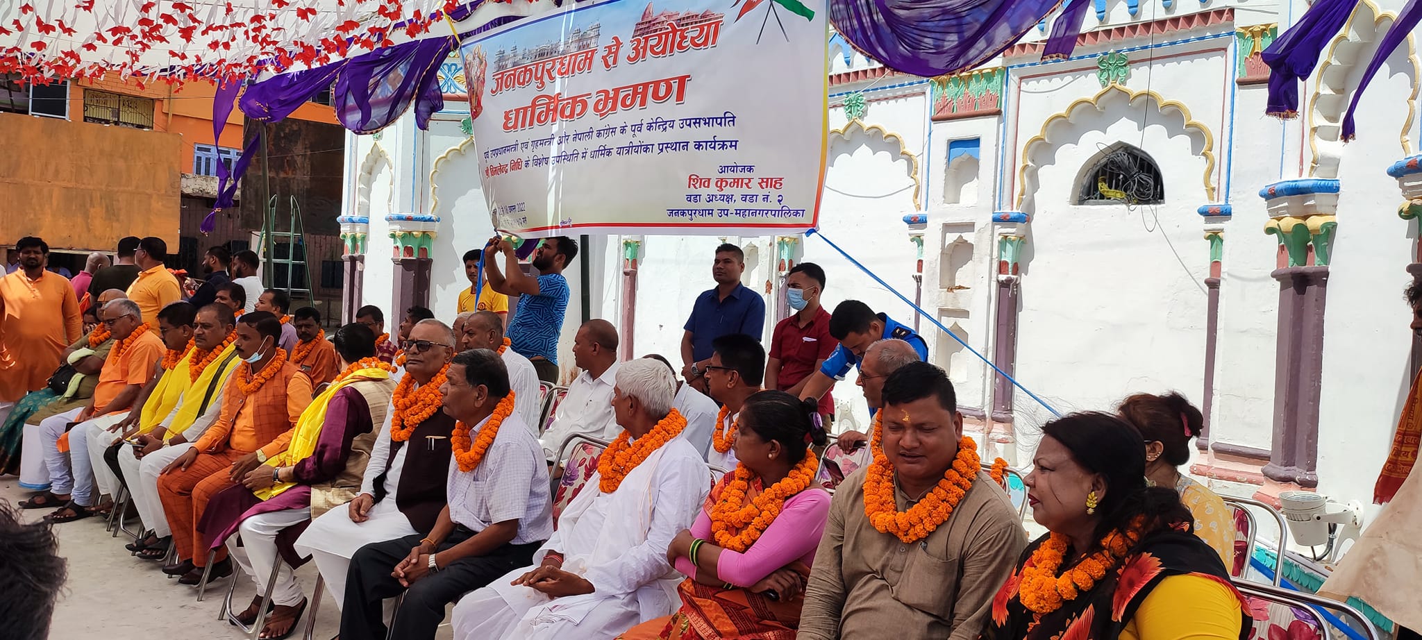 जनकपुरधाम उपमहानगरपालिका वडा नम्बर–२ का वडाध्यक्ष शिवकुमार साहको आयोजनामा आइतबारदेखि धार्मिक यात्रा प्रारम्भ भएको छ ।