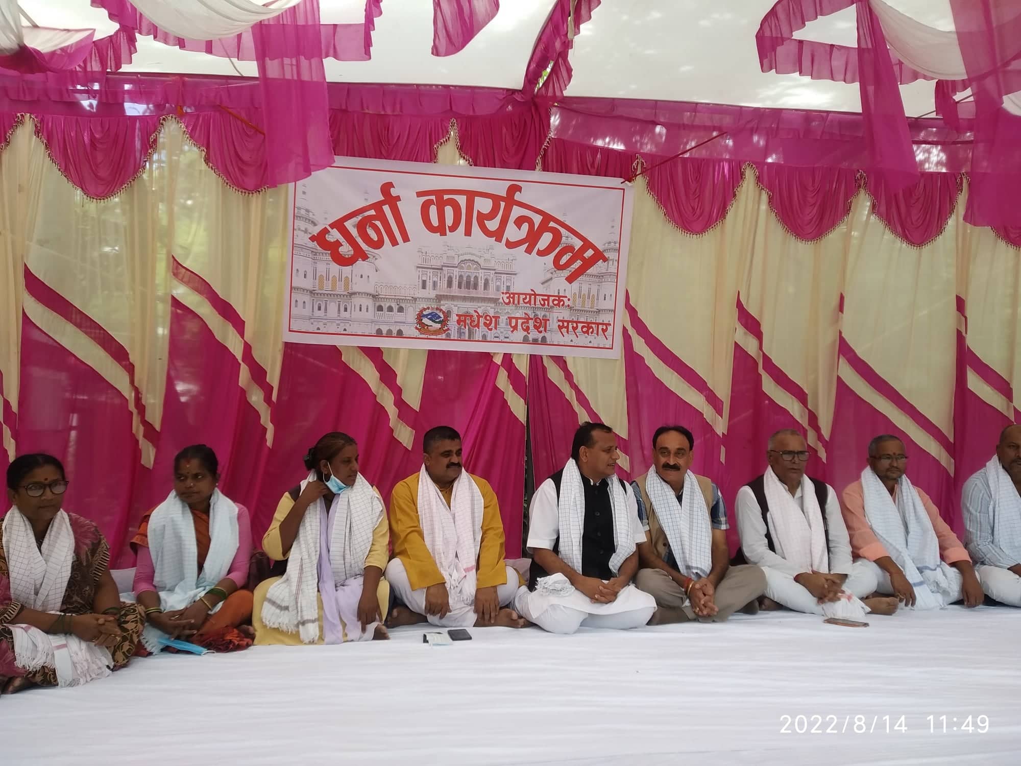 जनकपुरधाम, २९ साउन । मधेस प्रदेशका मुख्यमन्त्री लालबाबु राउतसहित मन्त्रीहरू आइतबारदेखि प्रदेश प्रमुखको कार्यालय अगाडि धर्नामा बसेका छन् ।