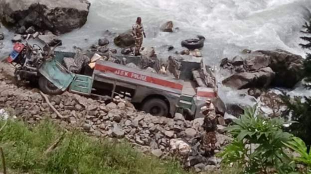 बस साधुपडाव र चन्दनवाडीको बीचको एक ढलानबाट नदीमा खसेको हो । नजिकै तैनाथ बीएसएफका जवान घटनास्थलमा पुगेका छन् र सबैभन्दा उद्दारकार्यमा जुटेका छन् ।