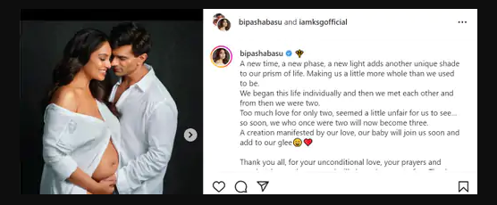 एजेन्सी, ३१ साउन । बिपाशा बसु र करण सिंह ग्रोवरले हालै आफ्नो गर्भावस्थाबारे जानकारी दिएका छन् । यो जोडीले सोसल मिडियामा फोटो सेयर गरेर खुसीको खबर साटेका हुन् । बिपाशा र करण विवाह गरेको ६ वर्ष पछि आमाबुवा बन्दैछन् । बिपाशाले आफू गर्भवती भएको खबर सार्वजनिक गर्न फोटोको सहारा लिएकी छिन् र उनको बच्चा चाँडै नै यो धर्तीमा आउन लागेको पनि बताएकी छन् ।
