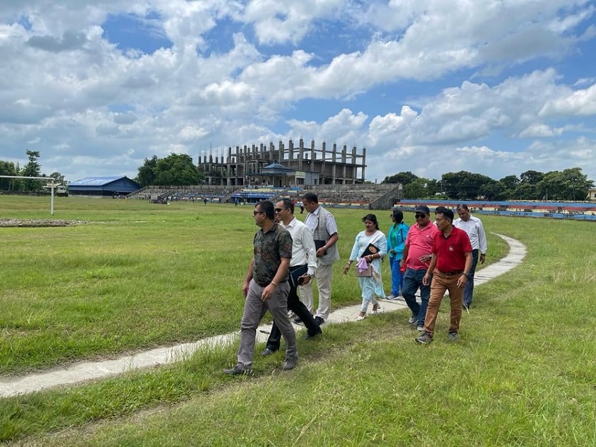 छनोट प्रतियोगिताको लागि झापाका खेल मैदान निरीक्षण