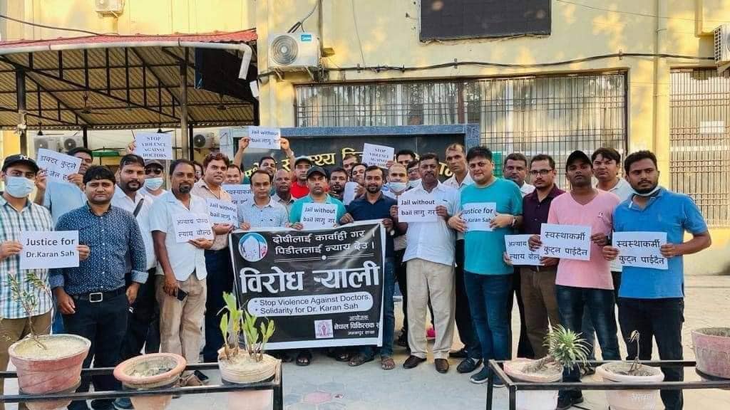 दोषीलाई कडा कारबाहीको माग गर्दै धनुषाका चिकित्सक तथा स्वास्थ्यकर्मीहरू आन्दोलित