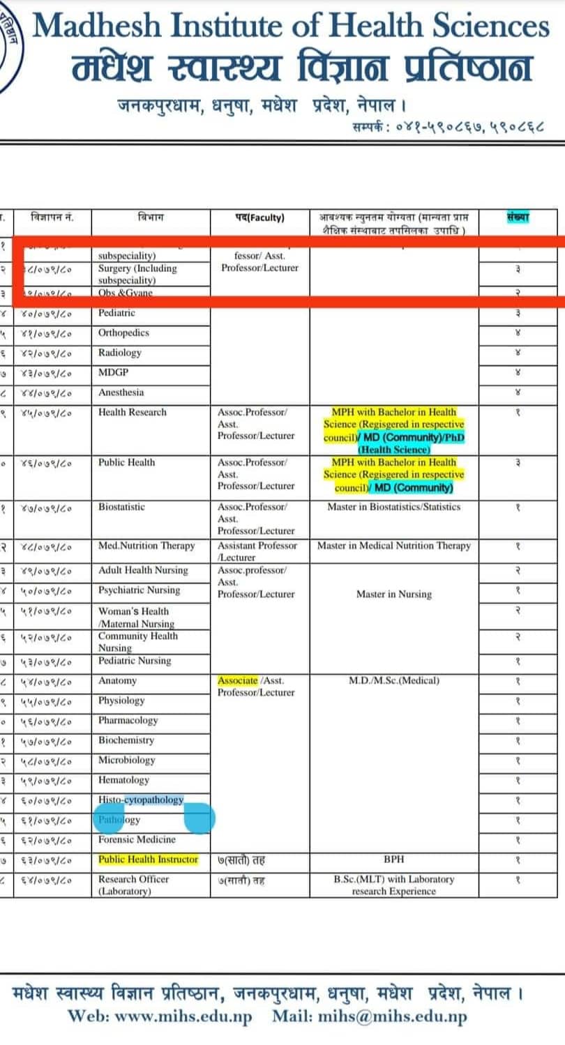 प्रतिष्ठानले पछिल्लो पटक जेनरल सर्जरी विभागमा विज्ञापन नम्बर–३८/०७९/८० मा ३ वटा सिटका लागि विज्ञापन आह्वान गरेपनि भदौ २० गते नतिजा प्रकाशन गर्दा ४ जनालाई उतिर्ण गरेको थियो ।