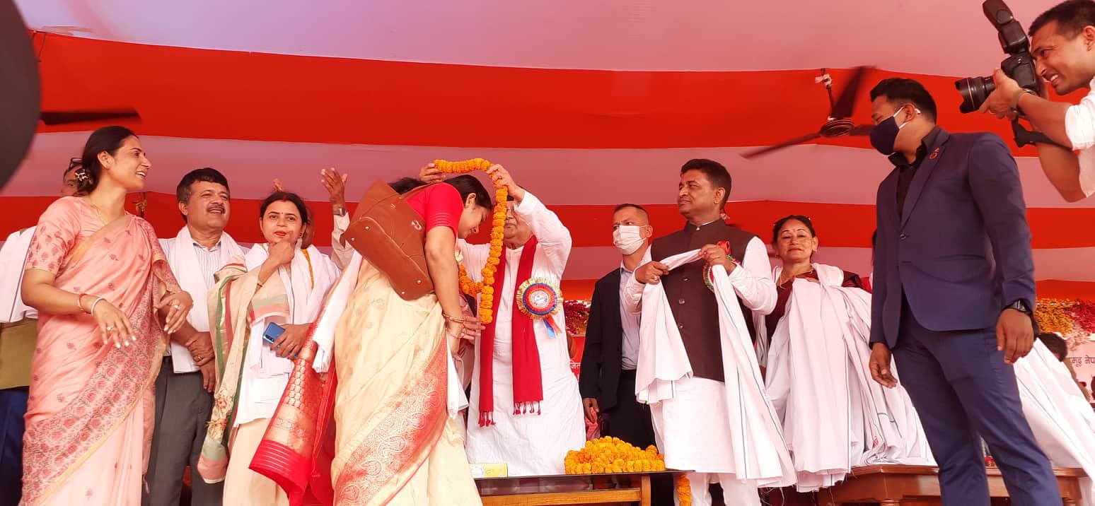 पार्टीका केन्द्रीय सचिव रघुवीर महासेठ, पोलिटब्यूरो सदस्य जुलीकुमारी महतो, जिल्ला अध्यक्ष राजकिशोर यादव लगायतका नेताहरुले उनलाई २०५ किलोको माला लगाएर स्वागत गरेका हुन् ।