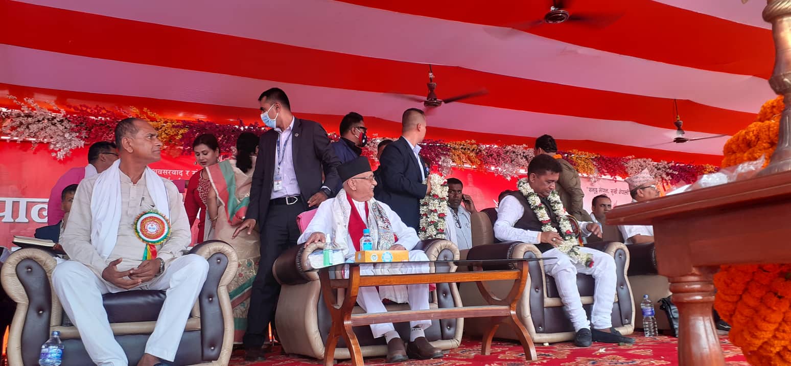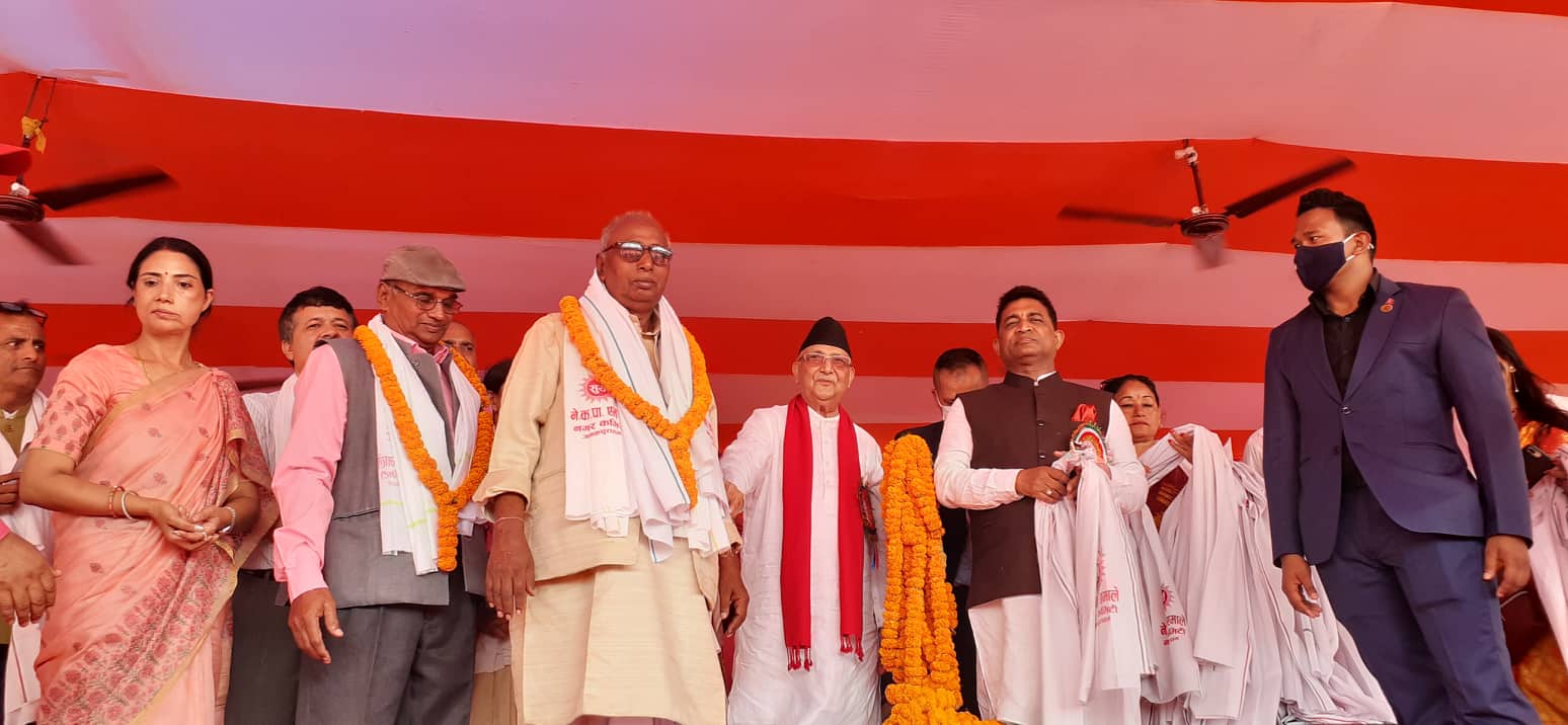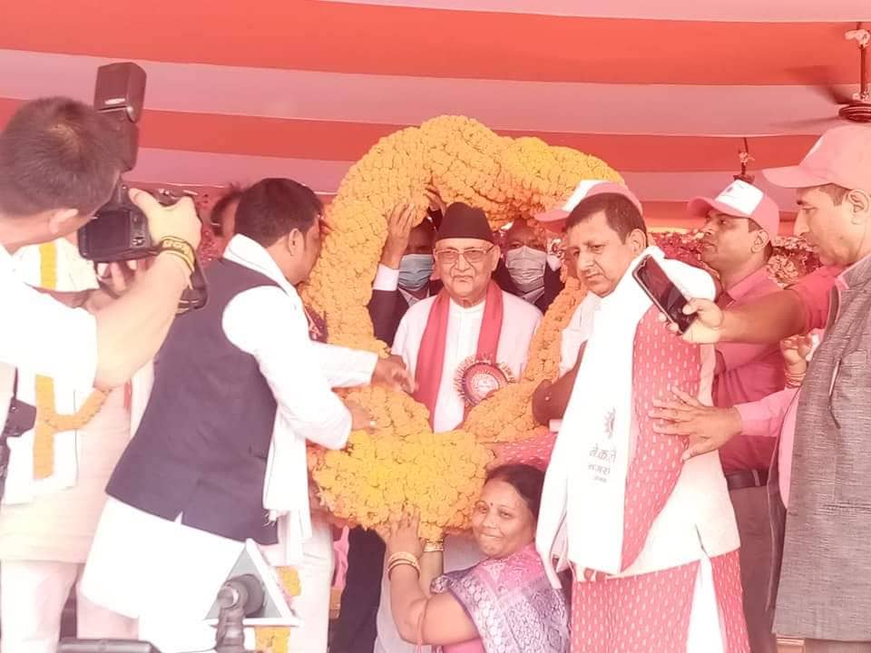 यसैबिच, अध्यक्ष ओलीलाई जनकपुरधाममा २०५ किलोको माला लगाएर पार्टीका नेता कार्यकर्ताहरुले स्वागत गरेका छन् ।